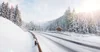 Sun shining on a snow covered road in the mountains of Italy