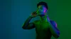 Colourful portrait of man listening to music for Jazz Festival poster